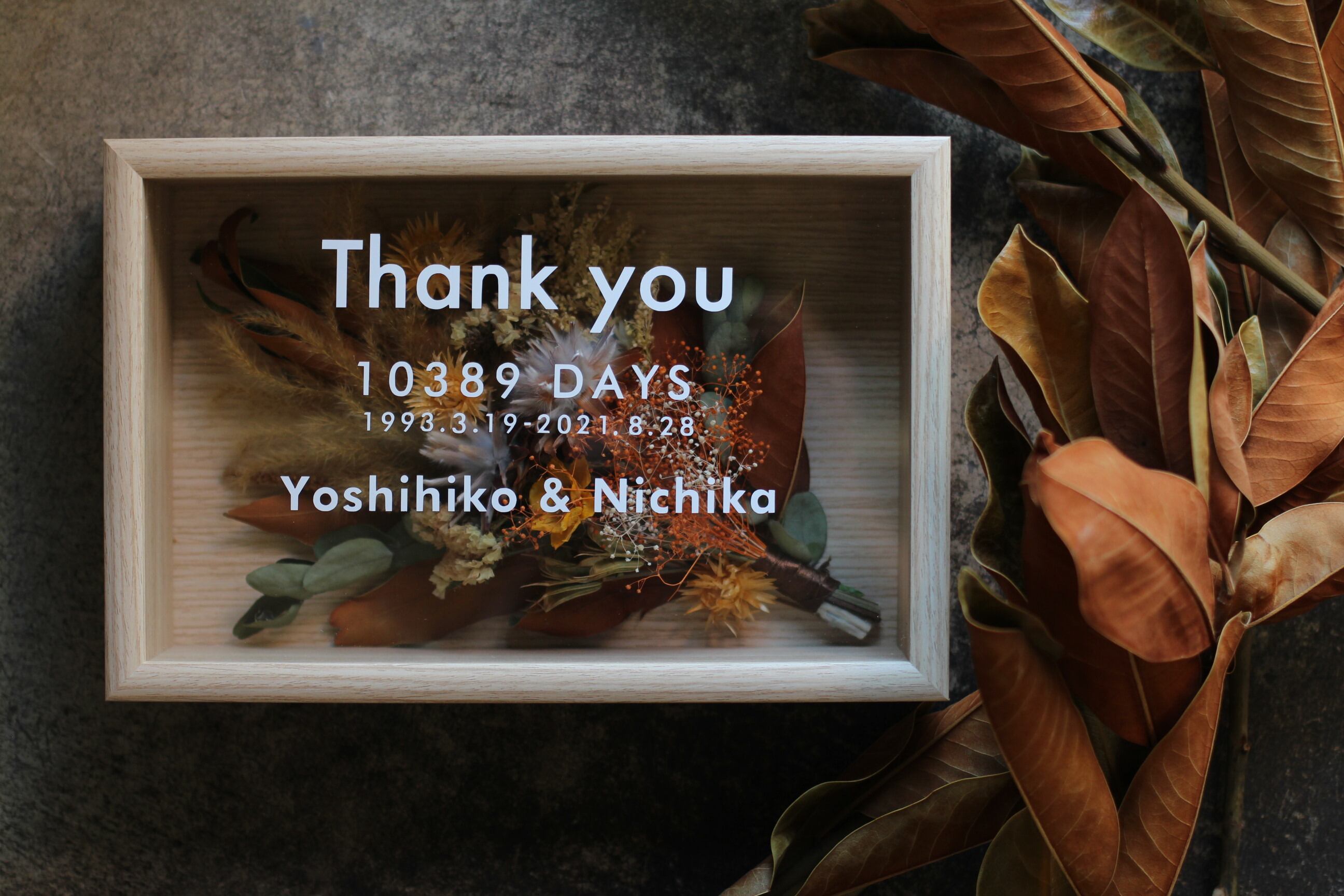 印字専用BOXドライフラワーブーケ(ナチュラルウッド)【両親贈呈品・結婚式・子育て感謝状・開店祝い】